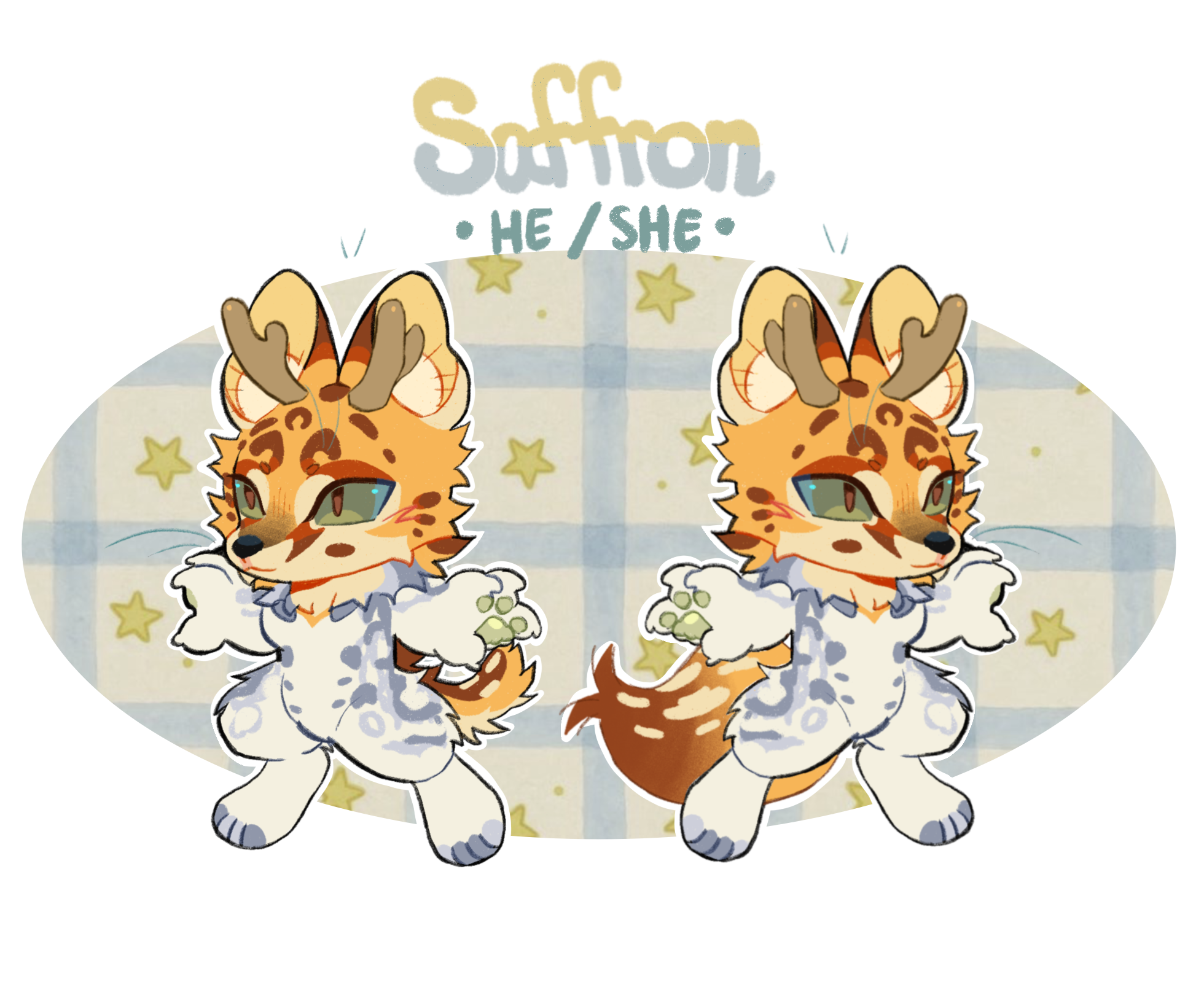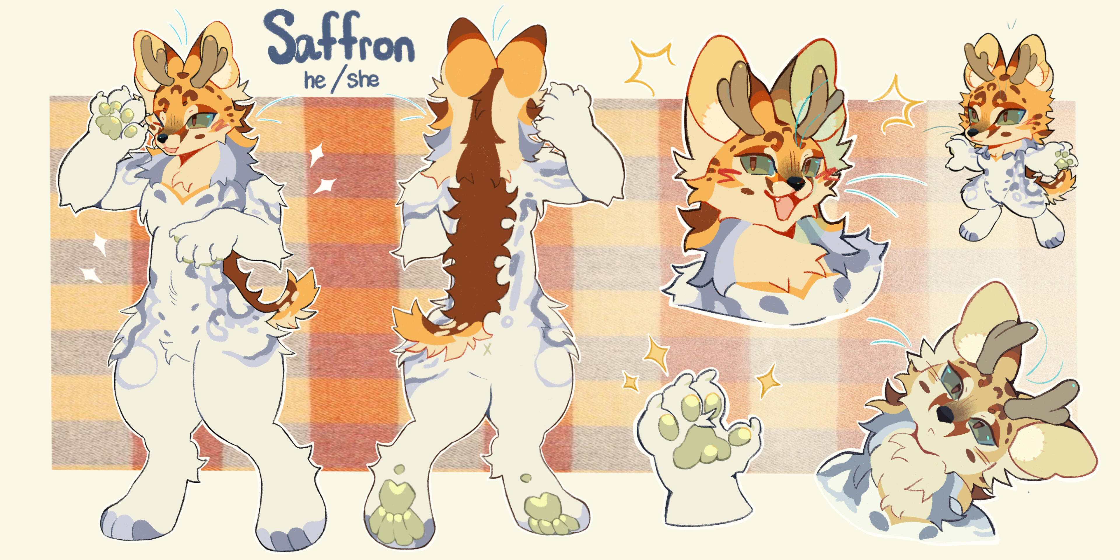 | saffron. he/she. unlabeled. serval x fox x deer thing. |