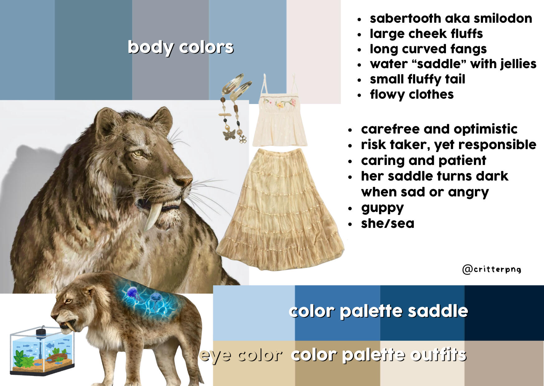 | guppy. she/sea. pansexual (likes older partners). sabertooth. |