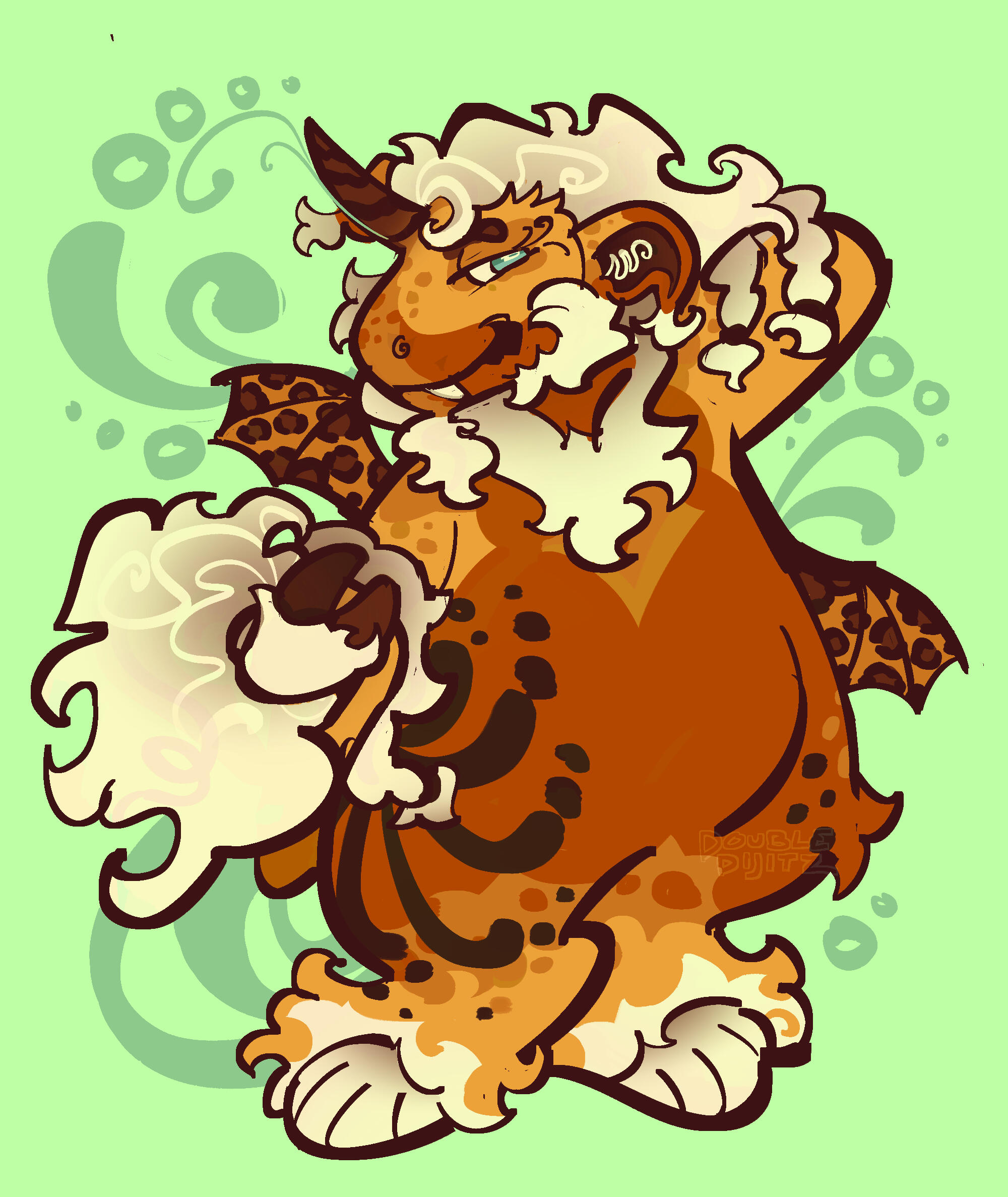 | okay i saw the snout and the curly wurly fur and the jaguar pattern and i fell in love.. it's rlly that simple 😔 and adopt + extra art? STEAL !!! 🤸🤸 |